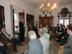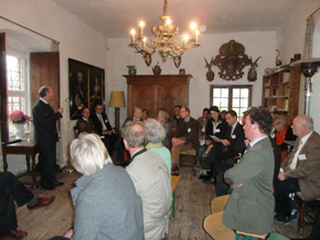 Heinrich Freiherr von Pölnitz, seit 2012 Vorsitzender der Gesellschaft für Fränkische Geschichte und seine Frau Freifrau Fiona von Pölnitz waren hocherfreut über den regen Besuch der Veranstaltung, die zum ersten Mal in der 109-jährigen Vereinsgeschichte in der Fränkischen Schweiz stattfand. Von Pölnitz verwies auf die fast 1000-jährige Geschichte des Geschlechts derer von Pölnitz und auf die mehr als 600 Jahre alte wechselvolle Chronik des Schlosses Hundshaupten, in dem die Tagung stattfand.